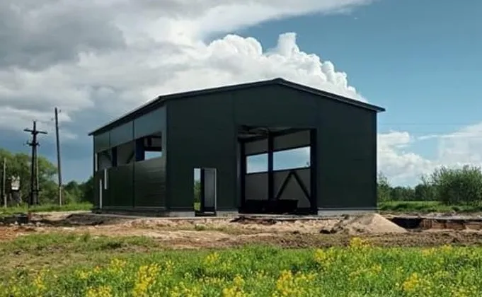 - ограждающие конструкции: сэндвич‑панели толщиной 150 мм (минеральная вата + оцинкованная сталь);